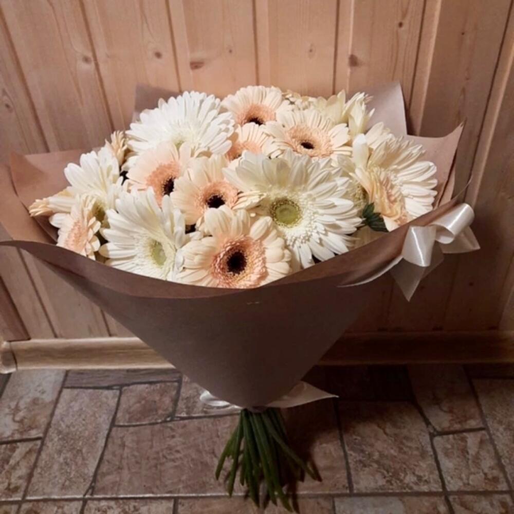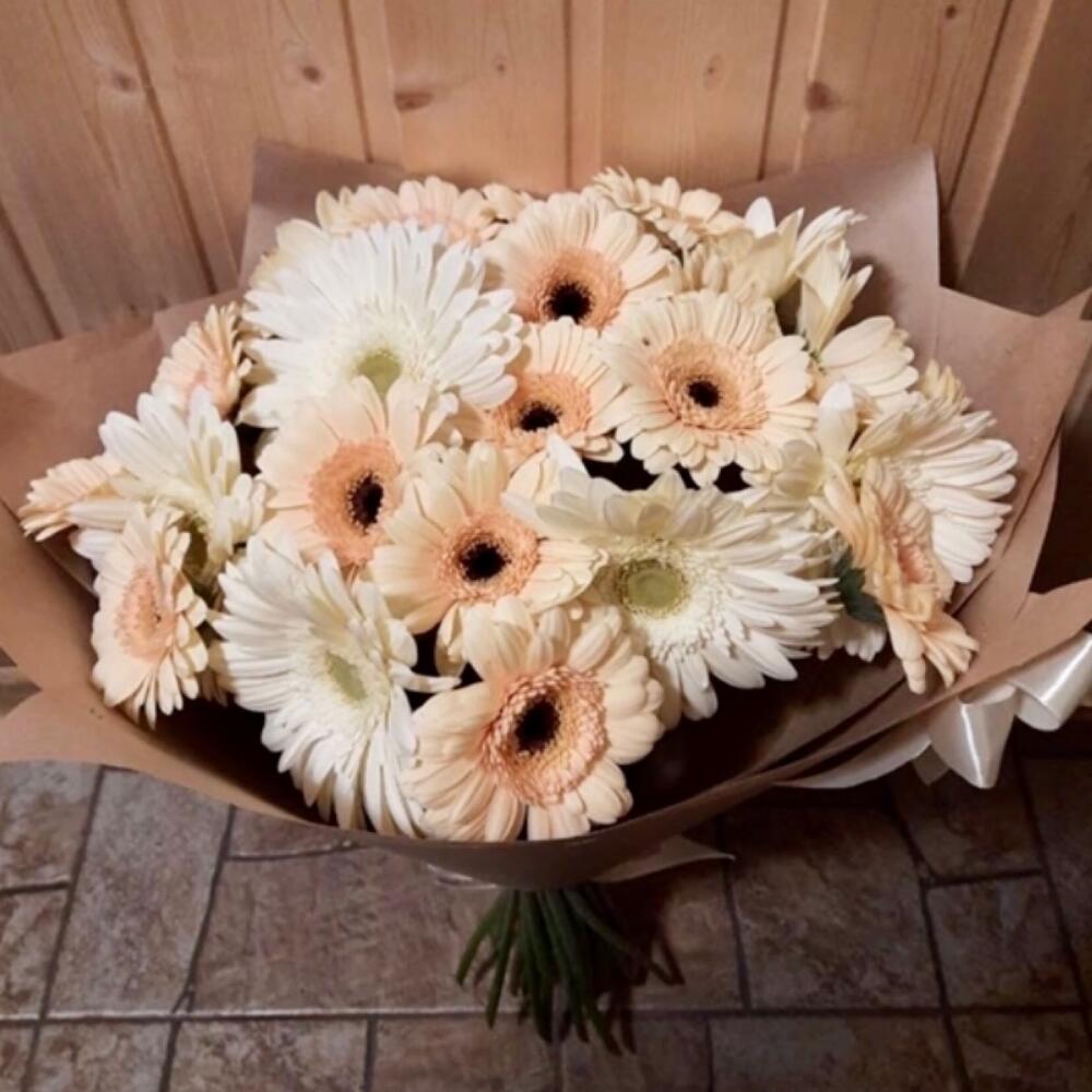Прекрасный сборный букет из 9 крупных Гербер + 20 мини Гербер в крафт упаковке (доступна в доп.товарах)❗️Цвета можно поменять ❗️(Пожелания напишите в чат, при заказе) По умолчанию, в подарок к букету- лента!❗️Обратите внимание❗️Другая подарочная упаковка, открытки, топперы и праздничные аксессуары доступны в доп.товарах!✅ Наш интернет-магазин на рынке уже более 8 лет!✅ Свежие цветы 3 раза в неделю!✅ Быстрая доставка в день заказа!