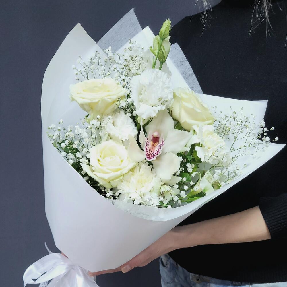 Воздушный поцелуй Букет из роз и орхидей в Острове
