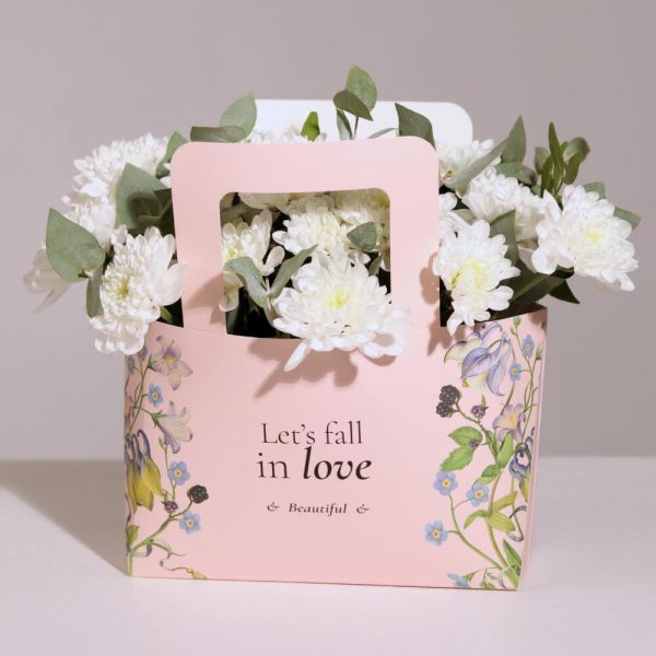Эта изящная композиция из белых хризантем и свежего эвкалипта, оформленная в стильной сумочке, станет Прекрасным подарком для девушки, жены, любимой, подруги. Такой букет не только порадует глаз, но и создаст атмосферу уюта и тепла в любом доме.