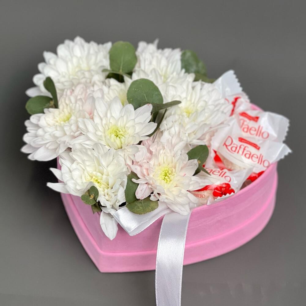 Подарочный набор со стойкими хризантемами и вкусными конфетами Рафаэлло✨