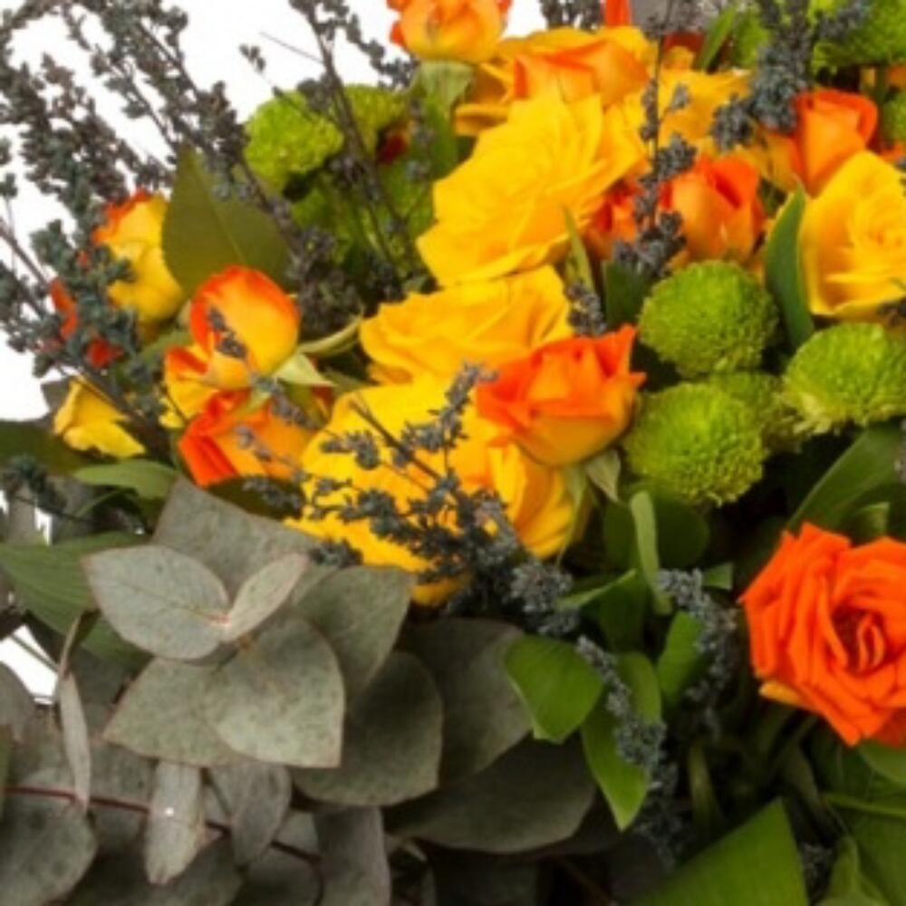 Цветы: роза, хризантема, эвкалипт, полевые цветы.