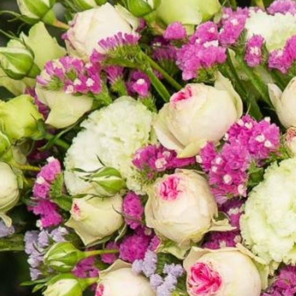 Композиция с кустовыми розами и лизиантусами