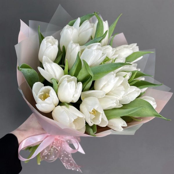 8марта 💐 Букет девушке из 25 белых хрустящих тюльпанов в Острове